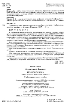 В учебно-практическом пособии рассматриваются: понятие трудовых споров, органы по их рассмотрению и разрешению, основные виды индивидуальных трудовых споров, споры отдельных категорий работников; понятие коллективных трудовых споров, примирительные процедуры, право на забастовку и его ограничения. В работе использованы Трудовой кодекс РФ, иные акты, содержащие нормы трудового права России, и международное трудовое право. Достоинством издания является судебная практика: постановления и определения Конституционного Суда Российской Федерации; постановления Пленума Верховного Суда Российской Федерации, решения и определения судов общей юрисдикции по трудовым делам. Вносятся предложения по совершенствованию глав 60–61 Трудового кодекса РФ.
