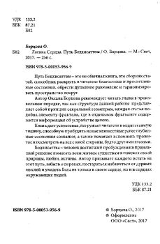 Путь Бодхисаттвы – это не обычная книга, это сборник статей, способных раскрыть в читателе благостные и просветленные состояния, обрести душевное равновесие и гармонизировать пространство вокруг. Автор Оксана Борцова рекомендует читать главы в произвольном порядке, так как структура данной работы представляет собой принцип сакральной геометрии, каждая статья подобна элементу фрактала, где в отдельном фрагменте содержится информация об устройстве целого. Книга дает успокоение, погружает читателя в медитативную тишину, способную пробудить новые неизвестные ранее глубинные состояния сознания, а также помогает вспомнить прожитое и посмотреть на все с иной стороны, будто другими глазами. Бодхисаттва – человек достигший пробуждения и принявший решение помогать всем живым существам в поисках своей природы, любви, истины. Автор призывает каждого встать на этот путь, забыть о пороках, постараться избавиться от дурных мыслей и увидеть Бога не только в своем сердце, но и в сердцах окружающих.