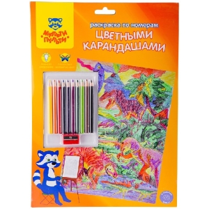 Раскраска по номерам А4 Динозавры с цветными карандашами 10425
