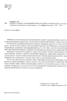Обобщен и систематизирован многолетний опыт работы ведущих научных, проектных и производственных организаций, занимающихся проблемами борьбы с огнем и шумом. Рассмотрена пассивная и активная огнезащита. Приведены средства и способы огнезащиты, огнезащитные покрытия для металлоконструкций, железобетонных конструкций, воздуховодов, деревянных конструкций, кабельных сетей. Даны системы противопожарной и противодымной защиты, пожарной сигнализации, автоматического пожаротушения.