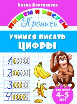 Предлагаем Вашему вниманию задания, направленные на формирование первоначального умения написания цифр у детей 4–5 лет. Современные дети рано начинают узнавать цифры и пытаются их изобразить на бумаге. Взрослые, как правило, не обращают внимания на то, правильно ли их ребенок пишет цифры. Но неверно сформированное написание устойчиво закрепляется, и в первом классе у ребенка изза этого возникают проблемы. Поэтому при первом желании малыша написать какуюнибудь цифру, надо сразу же знакомить его с правильным письменным написанием цифры. Задания в данной тетради научат ребенка сначала узнавать письменные цифры, соотносить определенное количество предметов с нужной цифрой (числом). Потом — познакомиться с правильным написанием цифр, запоминая, откуда надо начинать писать каждый элемент данной цифры. И затем — ребенок будет учиться писать цифры правильно, соединяя все элементы цифры в нужной последовательности. Это позволит ему сформировать устойчивый навык верного написания письменных цифр. Тетрадь рассчитана на совместную работу взрослых и детей. Адресована родителям и педагогам для занятий с дошкольниками.