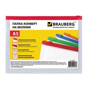 Папка-конверт на молнии BRAUBERG "Smart" идеально подойдет для хранения и транспортировки документов.