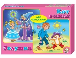 Простая настольная игра, рассчитанная на детей от 3 лет. Правила знакомы всем с детства – кубик и несколько фишек для игроков. Коллективная игра мгновенно обучит малыша считать до шести, а со знакомыми персонажами двух игр в комплекте вы придумаете свои неповторимые истории про Золушку и Кота в сапогах.