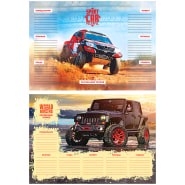 Расписание уроков формата А3 сделано на плотном целлюлозном импортном картоне плотностью 200 г/м2. В одном артикуле представлено 2 дизайна с тематикой "Джипы". Расписания упакованы в термоусадочную пленку по 20 шт. (по 10шт каждого из 2-ух дизайнов). Транспортная упаковка - гофрокороб.