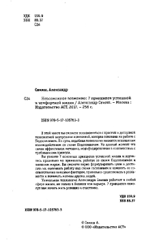 В этой книге вы сможете познакомиться с простой и доступной технологией внутренних изменений, которая основана на работе с Подсознанием. По сути, подобная технология является осознанным взаимодействием со своим Подсознанием. На данный момент это самая эффективная методика, модифицированная в соответствии с требованиями времени. Вы узнаете 7 основных принципов успешной жизни и научитесь правильно их применять, работая со своим Подсознанием и внешним миром. Вы сможете верно формулировать цели и достигать их, оценивать работу над своим состоянием и изменять ее соответственно внешним факторам, правильно существовать в реальности и понимать мотивы других людей. Уникальная технология Александра Свияша работает в любой сфере жизни, не только в бизнесе или карьере. 7 принципов помогут вам начать жить успешно и счастливо.