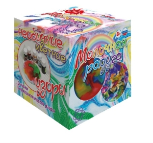С набором «Молочная радуга» вы сможете провести простой, но очень зрелищный эксперимент у себя дома. Вы узнаете много интересного о свойствах различных жидкостей и сможете понаблюдать за настоящей радугой цвета. Весь секрет в сочетании красок и молока, которые не перемешиваются друг с другом в обычном состоянии. Специальное вещество изменяет их свойства, и это выглядит очень эффектно.