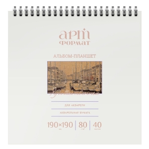 Альбом-планшет для эскизов содержит внутренний блок из 40 листов крафт-бумаги плотностью 80 гр/м на спирали. Оригинальный компактный альбом размером 19х19 см, удобен для повсеместного ношения с собой, а квадратная форма позволит реализовать множество интересных идей.