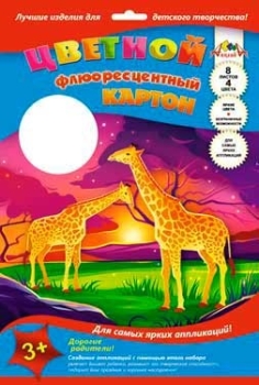 Набор цв картона А4 8л 4 цв флюор Жирафы С0384-03