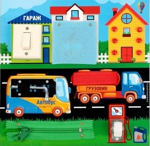 Транспорт. Бизиборд 3+. Развивающая доска 25*25 см