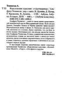 Альфред Теннисон — один из самых ярких представителей поэтической мысли Викторианской эпохи. Если сестры Бронте, Элизабет Гаскелл и Чарльз Диккенс представляют Викторианскую эпоху в прозе, то Теннисон, как никто другой, воплотил ее в поэзии. Давно замечено, что, не будь та эпоха названа Викторианской, она вполне могла бы носить имя Альфреда Теннисона. В своих удивительно живописных, музыкальных стихах он воплотил идеи и ценности своего вре мени, грезы и желания современников, хотя и обращался в своих сюжетах к далеким временам: к античности и к легендам о короле Артуре. В настоящем издании представлены самые известные произведения Теннисона: «Королевские идиллии», «Волшебница Шалотт», «Улисс», «Лотофаги» и другие.