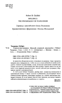 Хотите слышать "да" в ответ на свои предложения, просьбы и замечания? Книга Роберта Чалдини – самый уважаемый в мире учебник по повышению уступчивости окружающих. Она давно стала классикой деловой и психологической литературы. В ней автор показывает, как работают скрытые механизмы влияния и предлагает конкретные приемы, которые повышают вероятность согласия до максимума. Одновременно книга учит замечать, когда подобные приемы используют против вас, и объясняет, как защитить от них свое сознание.