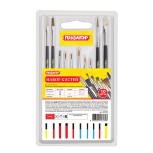 Кисти набор 10шт (пони: плоская № 4, круглые № 1, 2, 3, 5; синтетика круглые № 1, 3, 5; щетина плоские № 4, 8)