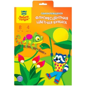 Набор цв бумаги 8л 4 цв самокл А4 Приключения Енота флуо