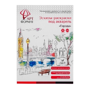 Раскраска-эскиз Города 10 листов А4 акварельная бумага 200 гр в папке