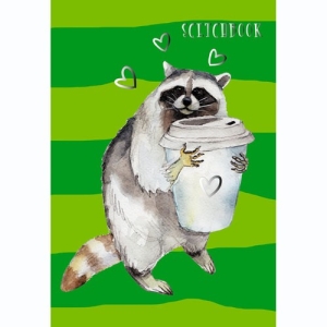 Скетчбук А5+ Енот и кофе 80л 7БЦ вн блок черный 80 гр/м
