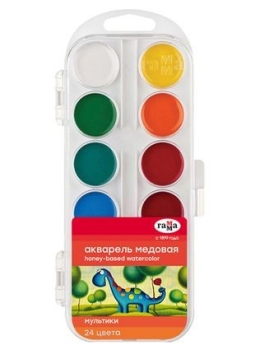 Акварель полусухая с добавлением натуральной патоки. Краски легко размываются, создавая прозрачный цветной слой.