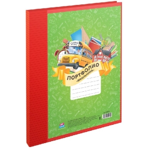 Папка-портфолио пластиковая А4 на 2-х кольцах для школьника 10 файлов