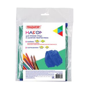 Набор для уроков труда ПИФАГОР - незаменимая вещь для защиты одежды и рабочей поверхности на уроках труда и занятиях творчеством. В набор входит: нарукавники и клеёнка. Предусмотрен для многоразового использования.