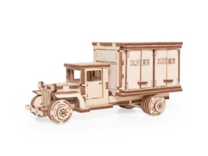 У собранной модели вращаются колеса, а также открываются дверцы фургона. При желании игрушку можно раскрасить акриловыми красками.