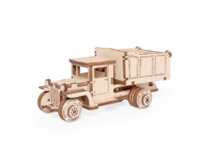 У собранной модели вращаются колеса, а также поднимается кузов и откидывается задний борт кузова. При желании игрушку можно раскрасить акриловыми красками.
