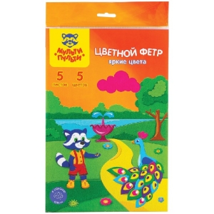 Фетр цв А4 5л 5 цв Приключения Енота яркие цвета