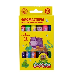 Фломастеры 12 цв 6шт толстые двухсторонние Каляка-Маляка
