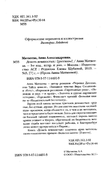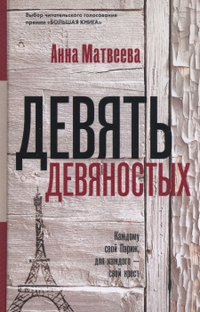 Анна Матвеева — автор романов "Перевал Дятлова, или Тайна девяти", "Завидное чувство Веры Стениной" и "Есть!", сборников рассказов "Спрятанные реки", "Подожди, я умру — и приду", "Лолотта и другие парижские истории", "Горожане". Финалист премий "Большая книга" и "Национальный бестселлер". Героев этой книги застали врасплох девяностые: трудные, беспутные, дурные. Но для многих они стали "волшебным" временем, когда сбывается то, о чем и не мечталось, чего и представить было нельзя. Здесь для сироты находится богатый тайный усыновитель, молодой парень вместо армии уезжает в Цюрих, обреченной на бездетность женщине судьба все-таки посылает ребенка, а Екатеринбург легко может превратиться в Париж… Книга "Девять девяностых" поулчила приз читательского голосования премии "Большая книга" (2 место). "У Матвеевой удивительный — чисто кортасаровский — дар оставлять в повествовании значимые пустоты, в результате чего само повествование приобретает поэтическую эллиптичность, да простится мне мой французский" (Виктор Топоров).