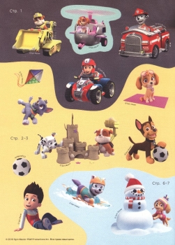 Что бы ни случилось, на помощь к тебе спешат шестеро храбрецов: Маршалл, Крепыш, Гонщик, Роки, Зума. Скай - уже в пути! Встречай любимых героев, проверяй, хорошо ли знаешь мультсериал, приклеивай многоразовые наклейки на игровые поля и сочиняй свои истории про отважных щенков из команды Райдера.