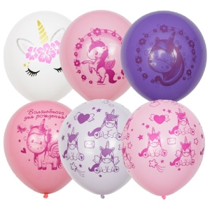 Шар надувной M12/30 см Единорог День рождения пастель