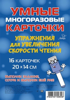 В серии "Умные многоразовые карточки" представлены учебные пособия для тренировки умений и навыков, которые школьники с 1 по 4 классы получают на уроках. Каждое из пособий предлагает ученикам отработать самые трудные темы по русскому языку, математике и английскому языку. Специальное покрытие карточек и волшебный фломастер позволяют писать и стирать написанное столько раз, сколько потребуется.