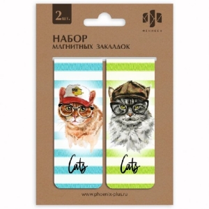 Закладки магнитные 2шт Коты в шляпе 30x80 мм мелов бумага на ферроагломерированном полимере