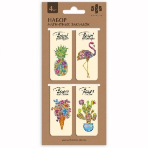 Закладки магнитные 4шт Разноцветная экзотика 25x117 мм мелов бумага на ферроагломерированном полимере