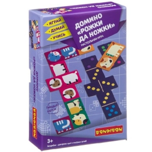 КОЛИЧЕСТВО ИГРОКОВ 1-4. Состав набора 28 двусторонних карточек, инструкция. Перед вами необычное домино, чтобы не только весело и интересно играть, но и многому научиться. Рекомендации для родителей подробно прописаны в инструкции. Вы можете выбрать любую игру по вашему желанию. Весёлой и интересной игры! Игра 1 Рожки да ножки. Цель игры - подбирать по картинкам нужные карточки таким образом, чтобы из двух половинок карточек получалось целое изображение одного животного. Игрок, который из всех своих карточек собрал животных, становится победителем. В том случае, если остались неиспользованные карточки, выигрывает игрок, у которого их наименьшее количество. Игра 2 Классическое домино. Цель игры - первым выложить все свои карточки, присоединяя их в правильном порядке. Каждый игрок кладёт карточку таким образом, чтобы число точек с одного конца карточки соответствовало числу точек присоединяемой карточки. Если в процессе игры невозможно больше положить карточку, то выигрывает тот, у кого при подсчёте окажется наименьшее количество точек на оставшихся карточках.