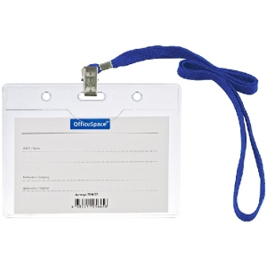 Бейдж горизонтальный 100*75 мм с клипсой на синем шнурке