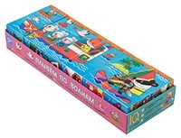 Набор состоит из 12 кубиков размером 4х4 см. Ребёнку нужно сложить картинки из 2, 4 и 6 фрагментов. В этом ему помогут листовки-подсказки с изображением водного транспорта. Далее транспорт можно соединить в любой последовательности, картинки взаимозаменяемы. Во время игры происходит знакомство с понятиями "часть и целое", развивается умение работать по образцу. Наклейки на кубики сделаны из качественной гладкой бумаги, которая не портится от игры.