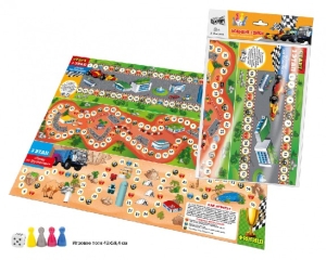 В этой игре малышам предстоит поучаствовать в гонке, состоящей из трех этапов: начинаются соревнования с гонок на спортивных болидах; второй этап – гонки на джипах и третий этап – гонки на грузовиках по пустыне. На пути игроков ждут поломки автомобилей, сложные участки трассы и бешеное ускорение. Победит самый отважный и удачливый игрок. Игра развивает у детей фантазию, логическое мышление, реакцию, учит считать. Играя, дети весело проведут время. Игра предназначена для 2-4 игроков. В наборе большое красочное поле размером 594/420 мм, кубик и 4 фишки необычных цветов: серебристая, малиновая, королевско-синяя и ярко-желтая.