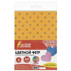 Фетр для творчества А4 5л 5 цв толщина 2 мм блестки