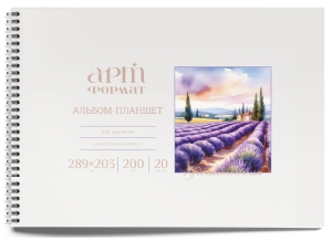 Альбом-планшет для акварели 20л А4 гребень жесткая подложка рисовальная бумага 200 г/м2