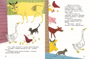 «Сокровище Петунии». Петуния любила купаться в реке под высоким утесом. Однажды, нырнув поглубже, она оказалась в подводной пещере. И там увидела огромный сундук с блестящими петлями. «Пиратские сокровища!» — решила она и тут же растрезвонила о своей находке по всей ферме. Неожиданно свалившееся на Петунию богатство изменило жизнь скотного двора. Петуния возомнила себя важной персоной, а обитатели фермы тоже захотели получить кусочек от ее богатства. Петуния потеряла покой: в ночных кошмарах ей снилось, что зловредные лягушки растаскивают ее сокровища. А днем ее осаждали бывшие друзья, которые теперь превратились в подхалимов и попрошаек. Сокровище Петунии стало яблоком раздора и привело к настоящей битве на скотном дворе. Неизвестно, чем бы все это закончилось, если бы лягушка не открыла Петунии глаза на происхождение сундука.