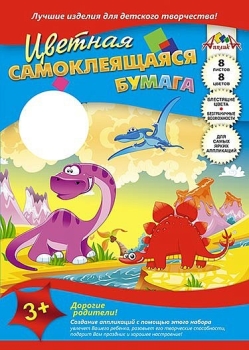 Набор цв самокл бумаги А4 8л 8 цв Динозаврики