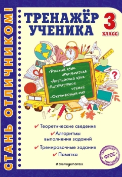 Тренажёр удобного формата, подготовленный в соответствии с требованиями ФГОС для начальной школы, предназначен для учащихся 3-го класса и учителей, включает в себя основные разделы школьной программы. Каждая тема состоит из блока теоретических сведений, памятки, образца, в котором наглядно показан алгоритм освоения учебного навыка, и блока тренировочных заданий для закрепления. Пособие поможет младшему школьнику научиться грамотно писать слова с непроизносимыми согласными в корне и с шипящими на конце, не делать ошибки в приставках и суффиксах, правильно выполнять морфологический, морфемный и синтаксический разборы, решать примеры и задачи на деление и умножение, пересказывать текст по-английски, работать с планом местности, анализировать сказки и басни. Усвоив общий алгоритм выполнения задания, ученик сможет применять полученные знания и в других учебных дисциплинах. Тренажёр может быть использован в качестве дополнительного материала на уроках русского языка, математики, литературного чтения, английского языка и окружающего мира, а также во время домашних занятий.