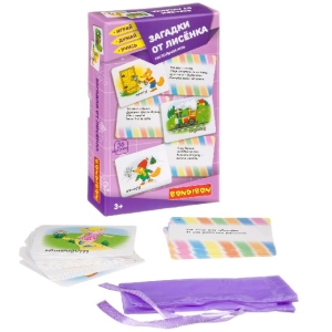 Занимательные загадки для малышей. Эту игру предлагает вам лисёнок. Он загадывает загадки, ответы на загадки нарисованы на обратных сторонах карточек.