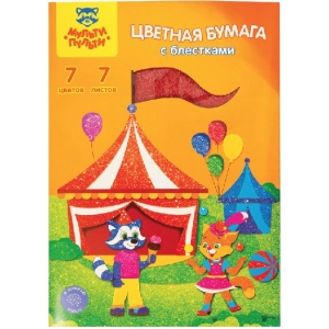 Бумага 7л 7 цв А5 Приключения Енота с блестками в папке