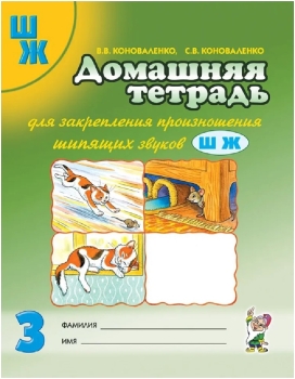 Домашняя тетрадь для закрепления произношения шипящих звуков Ш,Ж у детей 5-7 лет. № 3. Коноваленко В.В. Данная домашняя тетрадь входит в комплект пособий по закреплению произношения звуков речи у детей.