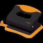 Дырокол 20л Monochrome пластиковый с каучуковой вставкой с линейкой черный с неоновым оранжевым