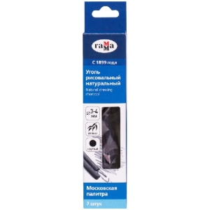 Уголь натуральный Московская палитра ивовый круглый 3-4 мм 7шт европодвес
