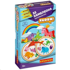 Возраст 5, Авторская разработка. НАСТОЛЬНАЯ ИГРА СЕРИИ УЛОВИ. УЛОВИ серия игр на быстроту реакции, в которых все участники играют одновременно. КОЛИЧЕСТВО ИГРОКОВ 2-8. Состав набора 31 карточка, мешочек, инструкция. Перед Вами 6 ИГР В ОДНОЙ! Вы можете выбрать любую игру по Вашему желанию. Правила каждой игры подробно прописаны в ИНСТРУКЦИИ. Цель каждой игры развить зрительную память, внимание ребёнка и скорость реакции. Различные варианты игры делают её интересной и для малышей, и для ребят старшего возраста. Перед началом каждой игры внимательно рассмотрите все изображения животных на игровых карточках. На каждой карточке 6 животных. И только одно из них совпадает. Его и нужно найти. Будьте внимательны! В нашей игре животные меняют позы, свои цвета, размер и даже рисунок на них, но при этом остаются самими собой, и нужно найти пару. Ни одна карточка не повторяется.