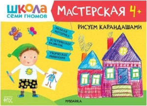 Книга детская. Рисуем карандашами. 4 + . Книга «Рисуем карандашами 4+» из серии «Школа Семи Гномов. Мастерская» — это красочный альбом для занятий рисованием с ребенком от 4 до 5 лет. Занятия на близкие и понятные ребенку темы расположены по мере усложнения: поступательно переходя от освоения простых навыков к более сложным заданиям, ребенок научится создавать рисунки с помощью карандашей или фломастеров.