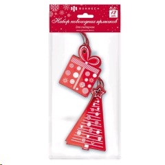 Набор подвесных ярлыков 12шт плюс подвесы 12шт Новогодние красные для новогодних подарков из картона с фигурной вырубкой
