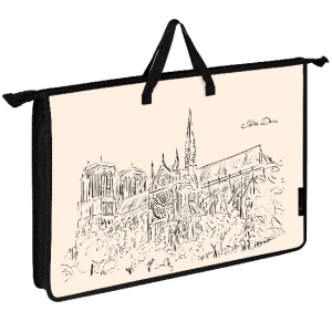 Папка с ручкой А3 Нотр-дам для рисунков на молнии пластик кремовая